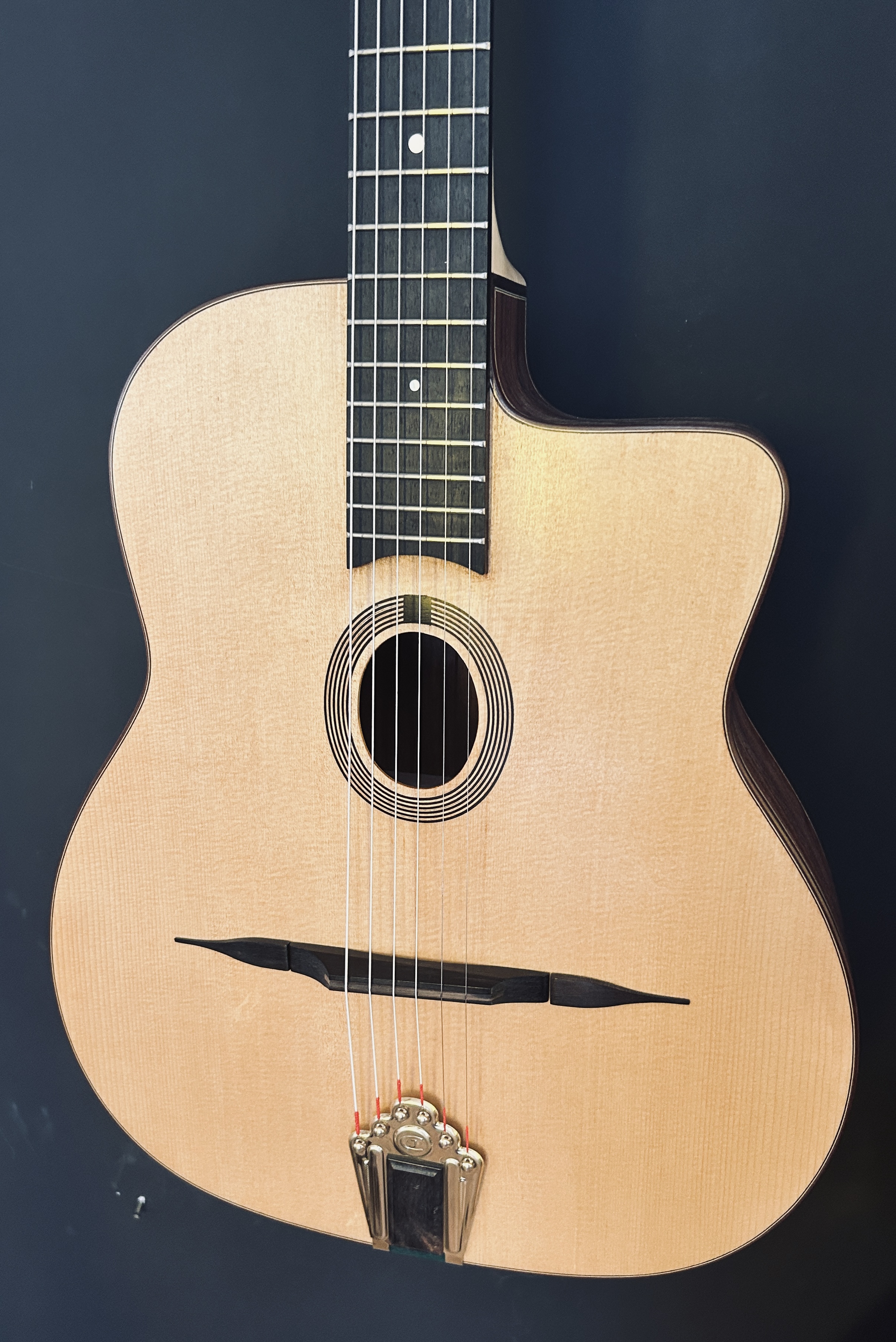 Chaque guitare 80ème Anniversaire est façonnée avec la même exigence que nos instruments sur mesure, alliant savoir-faire artisanal et choix esthétiques raffinés. Pensée pour les musiciens d’aujourd’hui, elle intègre des solutions modernes tout en respectant les principes classiques de la lutherie acoustique.