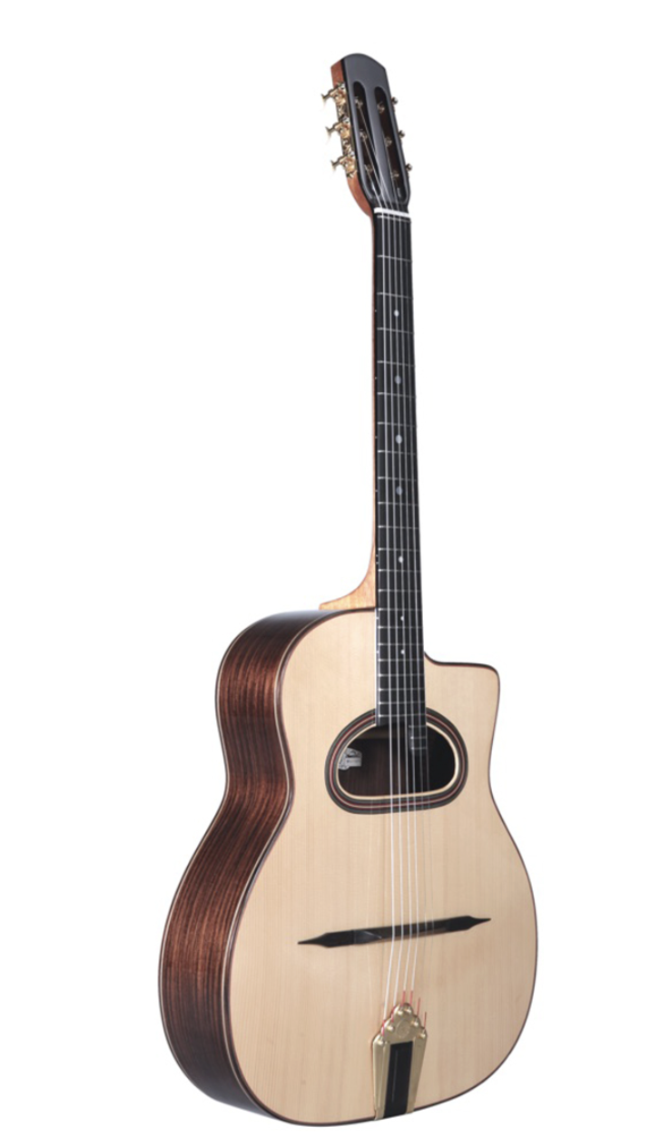 La guitare M30 est un instrument de style Selmer-Maccaferri adapté à la musique jazz manouche popularisée par le grand Django Reinhardt. Ce modèle est doté d’un dos et d’éclisses entièrement massifs ainsi que d’une table massive.